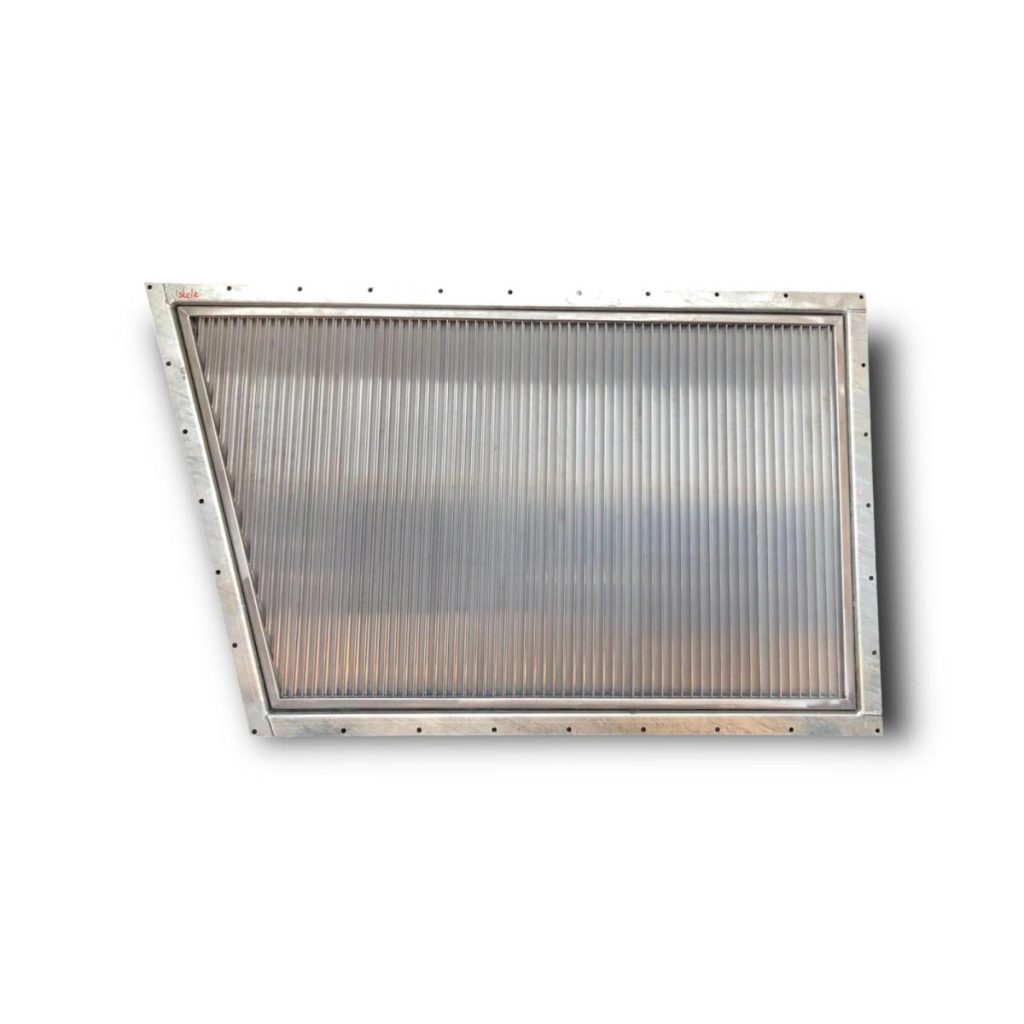 Aerodinamik profilli alüminyum kanatlar, hava akışını yönlendirirken içindeki su damlacıklarını çarptırarak tutar.